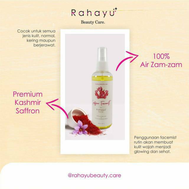 Saffron Facemist By Rahayu Beauty Care 100 Air Zamzam Dan Saffron Kashmir Premium Grade Tertinggi Shopee Indonesia